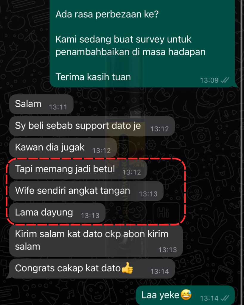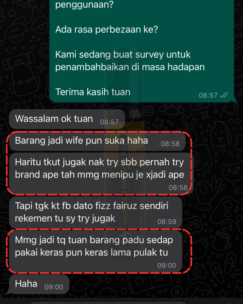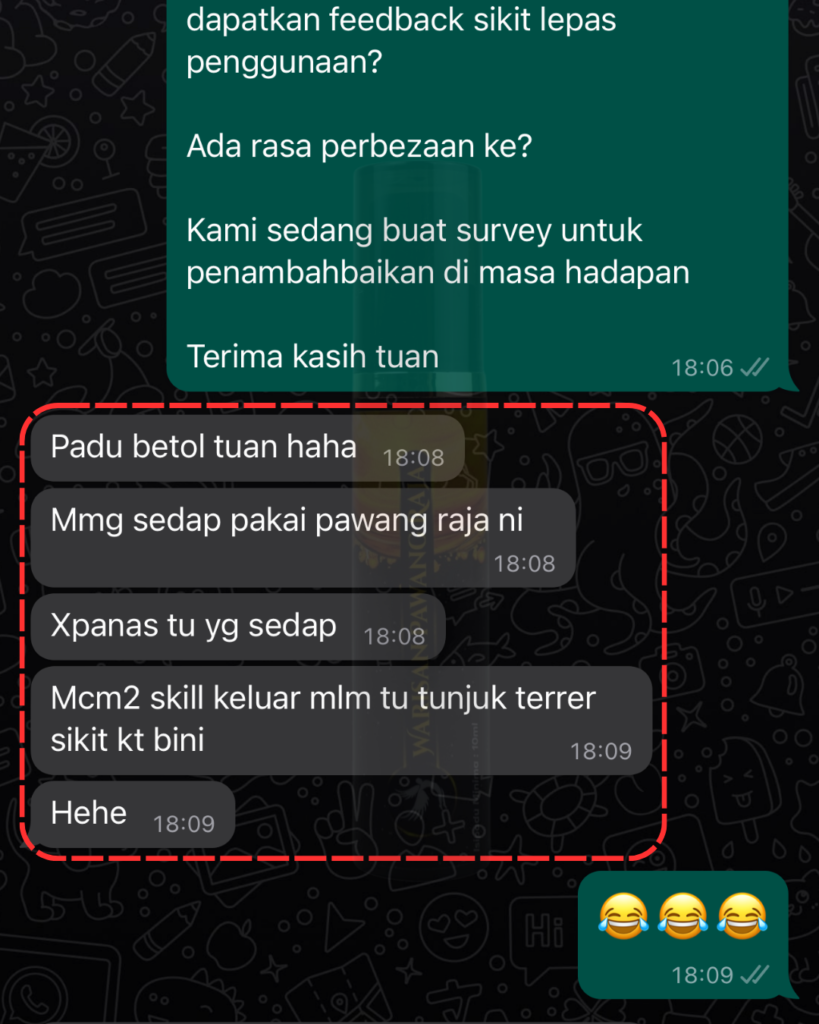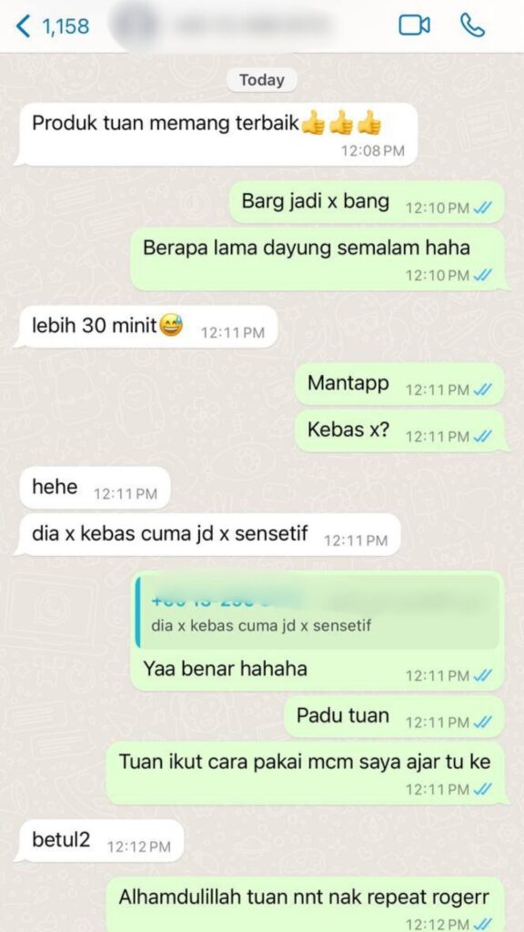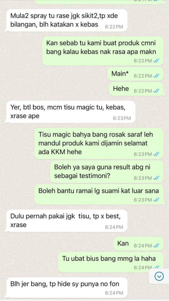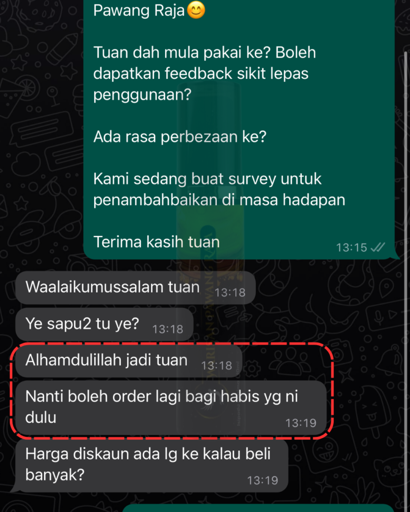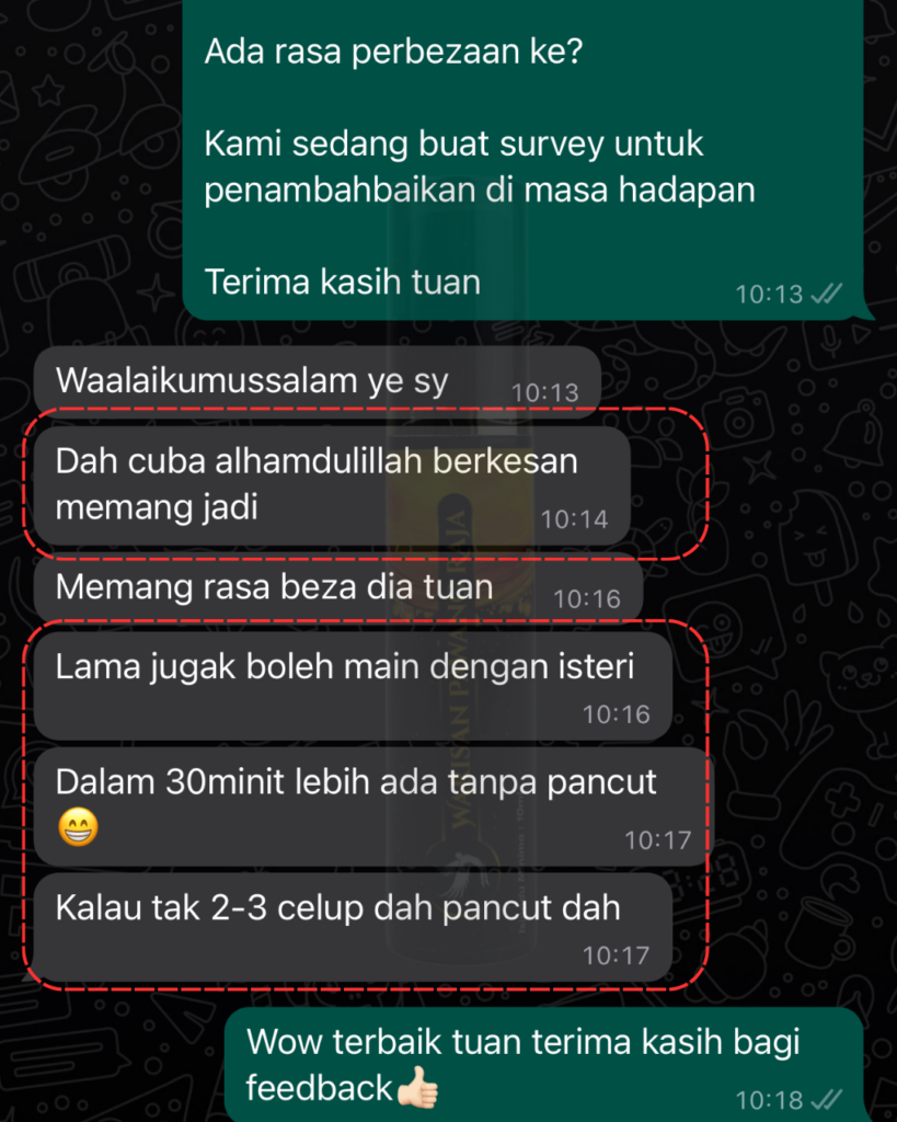 Tanpa banyak soal kami akan refund duit anda 100% jika tiada perbezaan atau perubahan yang berlaku selepas menggunakan Pawang Raja ini.